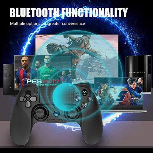 【Ad alte prestazioni】1. Tecnologia Bluetooth ad alte prestazioni per connessioni wireless “Bluetooth 2.1 + EDR” è adottato e fornisce un segnale stabile senza ritardo o caduta di linea in 8M. 2. È possibile utilizzare due joystick 3D analogici con una precisione di 360 °. 3. Due motori asimmetrici sono installati a sinistra e a destra, garantendo una doppia funzione di vibrazione. (Questo controller PS4 non supporta i giochi FPS e TPS.)